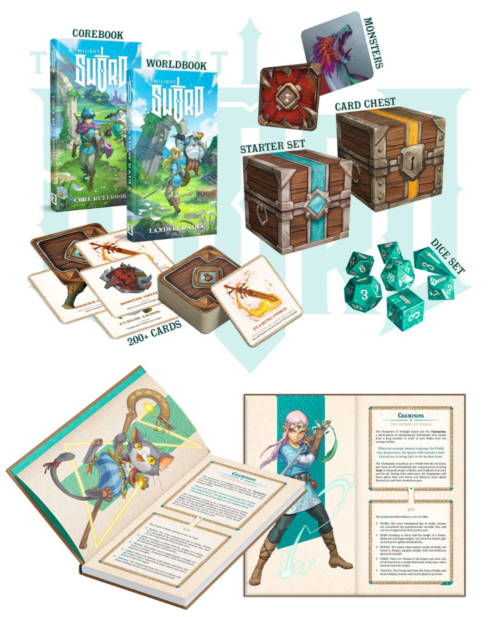 La campagne de Twilight Sword propose une série de livres et d’accessoires magnifiquement conçus qui donnent vie au monde de Radia :