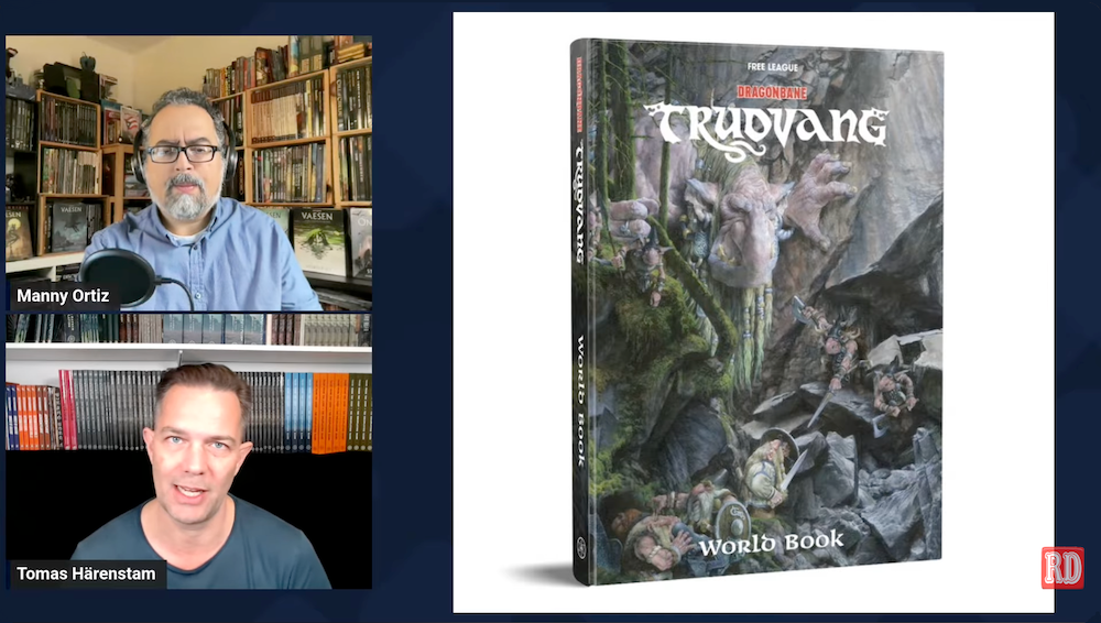 Manny Ortiz, de la chaîne Youtube Really Dicey, interroge en anglais Tomas Härenstam à propos de l’adaptation de Trudvang au système Dragonbane.