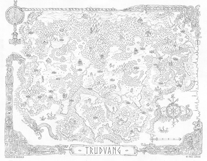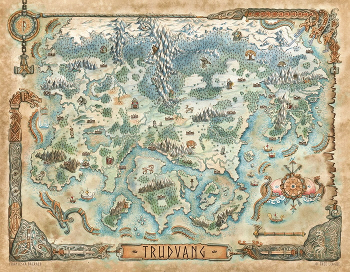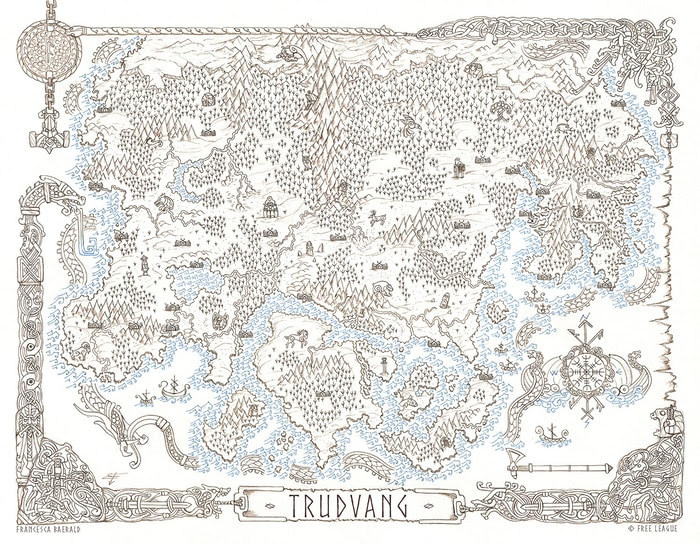 Alors que Dragonbane : Trudvang utilisera des ressources artistiques de maîtres tels que Paul Bonner, Alvaro Tapia et d’autres, nous ajoutons également de nouveaux travaux provenant d’anciens comme de nouveaux membres de l’équipe. L’incroyablement talentueuse Francesca Baerald a déjà dessiné plusieurs cartes pour Dragonbane, et il s’avère qu’elle avait également réalisé une carte de Trudvang par le passé.